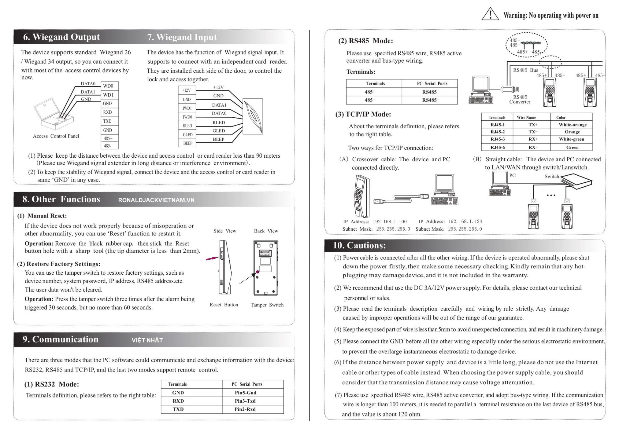 Công suất: 3000 Vân tay + 5000 Thẻ Từ