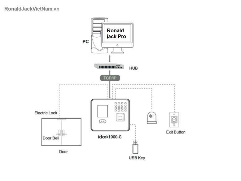 Sơ đồ lắp đặt máy chấm công vân tay Iclock 1000G